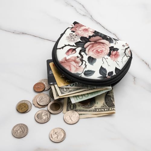 Portable Coin Purse Elegant-Blooming-Roses Mini Zippered Money Pouch Card Holder 5