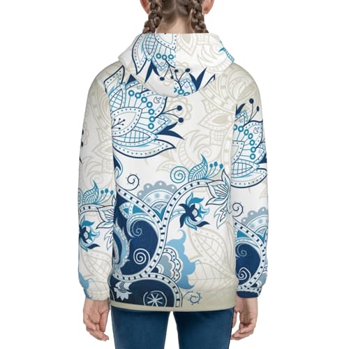 Abstract Blue Floral Kids Pullover Hoodies Boys Zip Up Sweatshirts Girls Athletic Clothes with Pocket