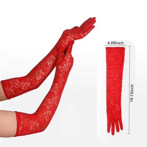 • Elegant red lace gloves & veil set: includes 1 pair of long red lace gloves (19.13 in) and 1 layered red bridal veil (32.67 in), the perfect combination for weddings, bachelorette parties, cosplay, burlesque, or Halloween costumes