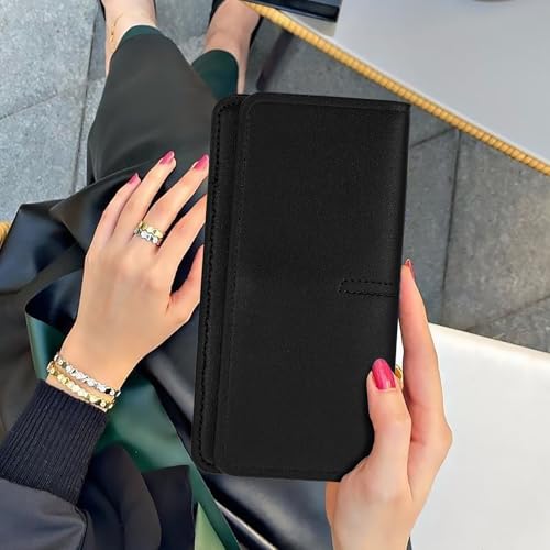 Long Wallet Purse, Unisex Slim Long Wallet Thin PU Leather Wallet Bifold Credit Card Clutch with Snap Closure Coin Pocket for Woman Men (Black) 6