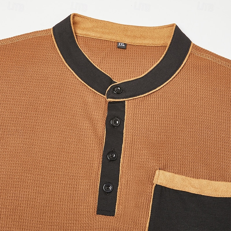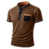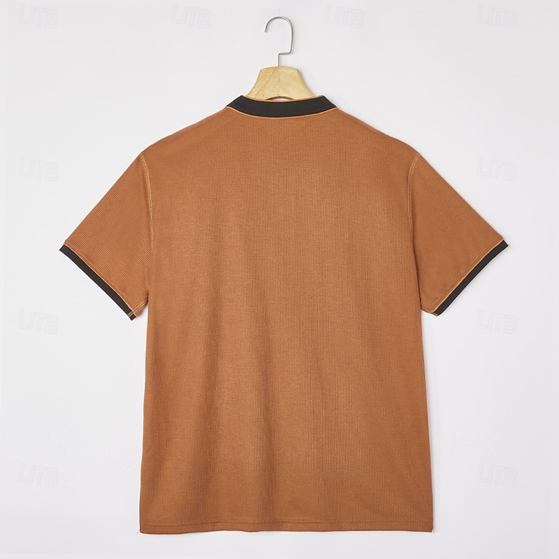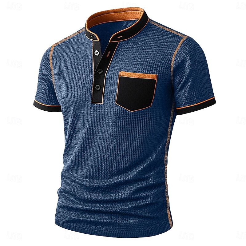 More information about Men's Waffle Henley Shirt Tee Short Sleeve Solid Color Plain Fashion Designer Comfortable Color Block Buttons Henley Outdoor Casual Daily Summer All Seasons Black Navy Blue Brown Henley T-Shirt