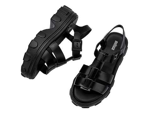 Fabric type: Fabric-and-syntheticOrigin: ImportedSole material: Ethylene Vinyl AcetateOuter material: 98% PVC + 2% METALTRENDY AND trendy: A chunky sandal with a robust and textured sole in the streetwear styleCOMFORTABLE AND LIGHTWEIGHT: Strut your stuff in a fisherman style platform sandal molded from our PVC with a cushioned EVA footbed for an extra soft, flexible, lightweight feel and maximum comfort.ADJUSTABLE: Features an adjustable buckle for a customized fit, allowing you to find the perfect level of support and security for your feet.SIGNATURE FRUIT SCENT: Our signature bubblegum-scented MelFlex smells like fun and feels like a dream.VEGAN AND ECO-FRIENDLY: All Melissas are made in Brazil with our 100% recyclable and cruelty-free PVC MelFlex material, so you can enjoy sustainable fashion without the environmental footprint. Perfect for everyday use. top-grade materials and excellent craftsmanship ensure long-lasting durability.