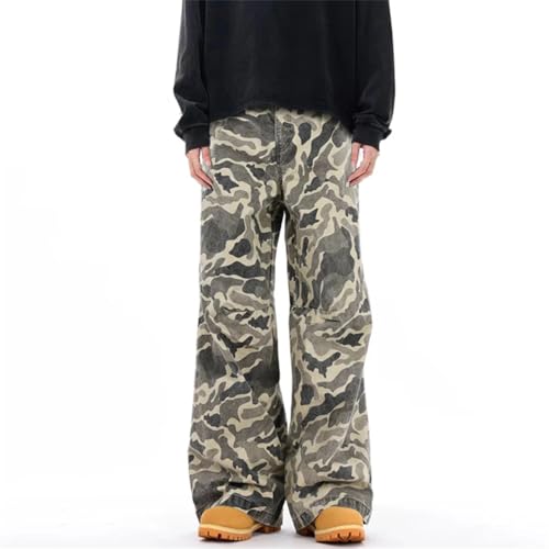 HOT ! Men's American Style Denim Cargo Pants Camo1 Straight Bottom Tide Baggy Wide Leg Cowboy Jeans