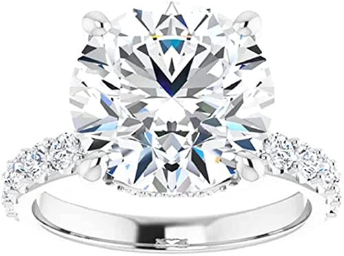 HOT ! Moissanite World 5 CT Round Cut Colorless Moissanite Engagement Ring, Wedding/Bridal Ring Set, Solitaire Halo Style, Solid Sterling Silver Vintage Antique Anniversary Promise Ring Gift for Her