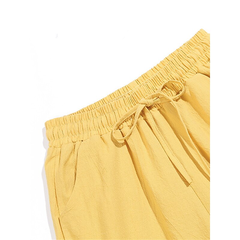 Women's Cotton Linen Shorts Linen-Inspired Pants Cotton Linen Pants Streetwear Simple Casual Long Mid Waist Plain Pocket Drawstring Baggy Breathable Soft Outdoor Micro-elastic Outdoor Vacation Casual 19