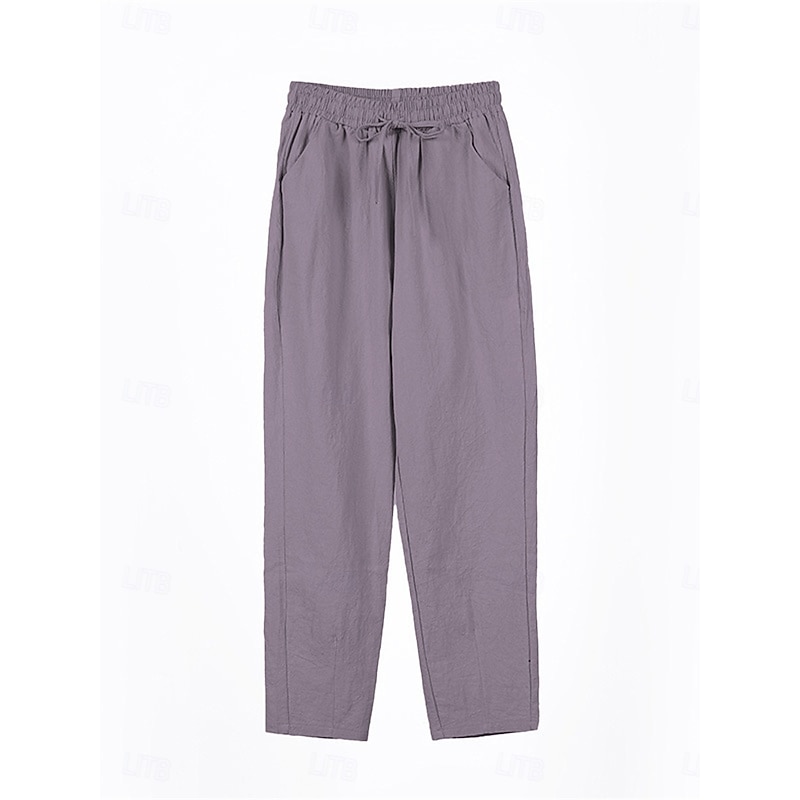 More information about Women's Cotton Linen Shorts Linen-Inspired Pants Cotton Linen Pants Streetwear Simple Casual Long Mid Waist Plain Pocket Drawstring Baggy Breathable Soft Outdoor Micro-elastic Outdoor Vacation Casual