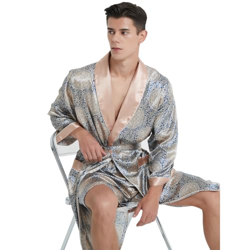 HOT ! Haseil Men's Luxurious Kimono Robe with Shorts Silk Satin Bathrobes Lightweight Long Sleeve Sleepwear Set