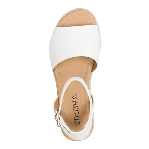 STYLISH S Gloria-IIS ~ Girls Single Band Open Toe Platform Wedge Espadrille Studded Sandals Adjustable Ankle Buckle 6