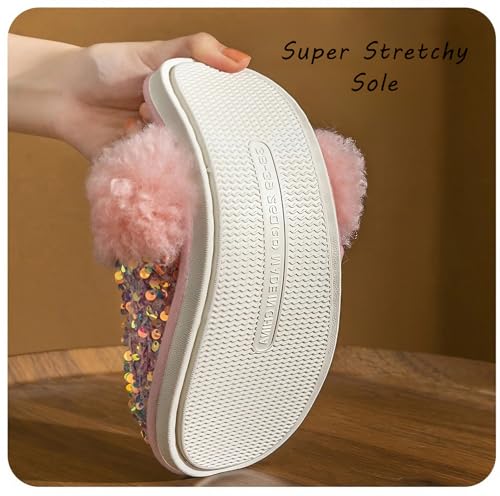 Fashion Sequins Slippers for Women & Men - Warm, Comfy, Non-slip, Plush, Fuzzy, Memory Foam Indoor/Outdoor Shoes 7