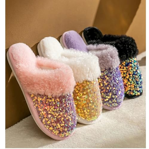 Fashion Sequins Slippers for Women & Men - Warm, Comfy, Non-slip, Plush, Fuzzy, Memory Foam Indoor/Outdoor Shoes 5