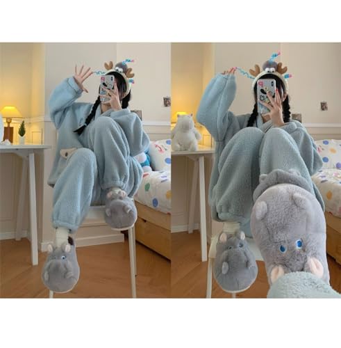 Kawaii Hippo Slippers for Women Men Fuzzy Couples Slippers Cute House Shoes Warm Slippers Winter Fluffy Home Shoes 7