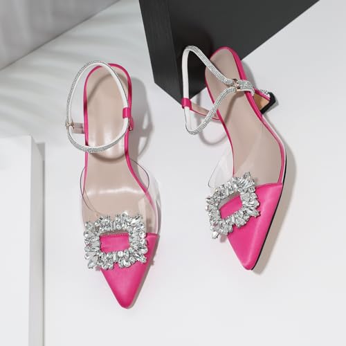 HOT ! Joseywade Rhinestone Slingback Low Kitten Heels Pumps Clear Sparkly Buckle Closed Pointed Toe Women's Adjustable Ankle Strap Shoes for Wedding Bridal Bridesmaid