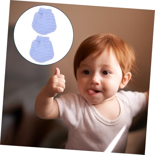 1 Pair Newborn Mittens Soft Knit Gloves with Scratch Stripes Winter Protection for Boys Secure Wrap Design for Delicate Skin 2