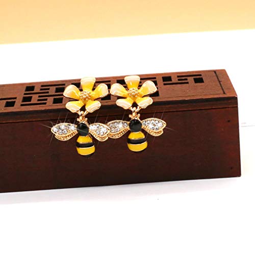 • Item Fashion Yellow Enamel Crystal Bee Flower Women's Ear Stud Earrings Quantity 1 Pair Material brass and Silver Needle Color Gold plated Stud Earrings, The bee stud earring size:3.2cm*2.2cm