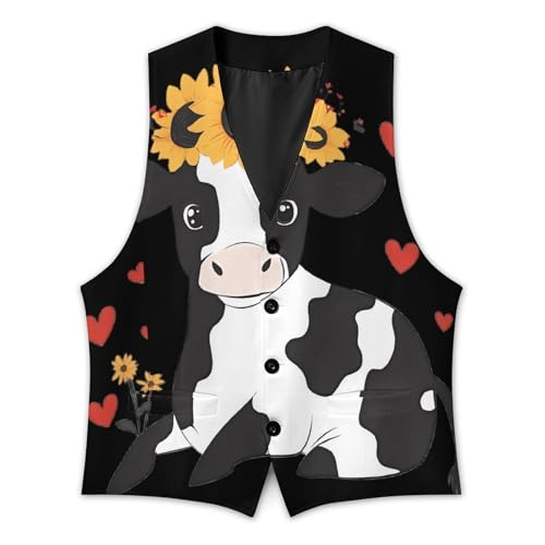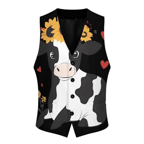 HOT ! Cow with Sunflower Suit Vest for Men Waistcoat Dressy V Neck Button Down Sleeveless Business Jacket Coat