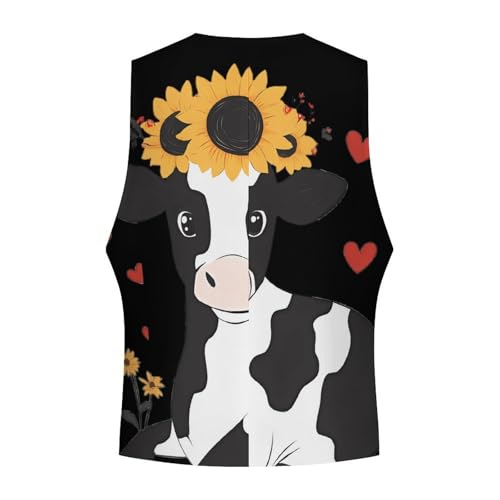 Cow with Sunflower Suit Vest for Men Waistcoat Dressy V Neck Button Down Sleeveless Business Jacket Coat 5