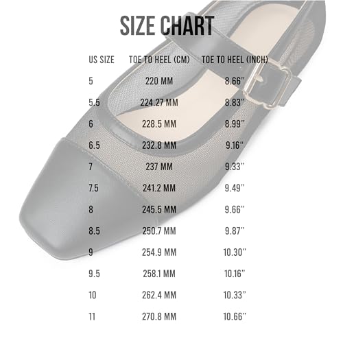 Sole material: RubberOuter material: SyntheticClosure type: ElasticWater resistance level: Not Water ResistantTIP: Please check our size chart to choose the right size, we highly recommend choosing the size according to your foot length. If you have wider feet or a higher instep, consider going one size larger.Style: These ballet flats shoes for women feature flat heel,square toe fabric for your in and out. Mary jane flats are fashionable and versatile shoes that can be worn with any outfit.Flats shoes provides stability and comfort.Material: The ballerina flats are made with cruelty-free synthetic leather to keep your feet and legs warm and dry throughout the day. Selected high-quality materials, one-time molding, non-slip pattern on the sole, make low heel flats safer and more reliable when walking. Many of our shoes also feature a padded sole and sturdy outsole for comfort and durability.MEASUREMENTS: These casual slip on flats measure approximately no heel.Occasion: These buckle strap flats are stylish, cute and comfortable. You can dress up for parties, weddings, travel, shopping, interviews and cosplay. Can also wear them to night clubs, parties, birthdays, offices and fashion shows. Perfect for most occasions. Perfect for everyday use. superior materials and excellent craftsmanship ensure long-lasting durability.