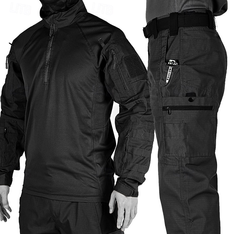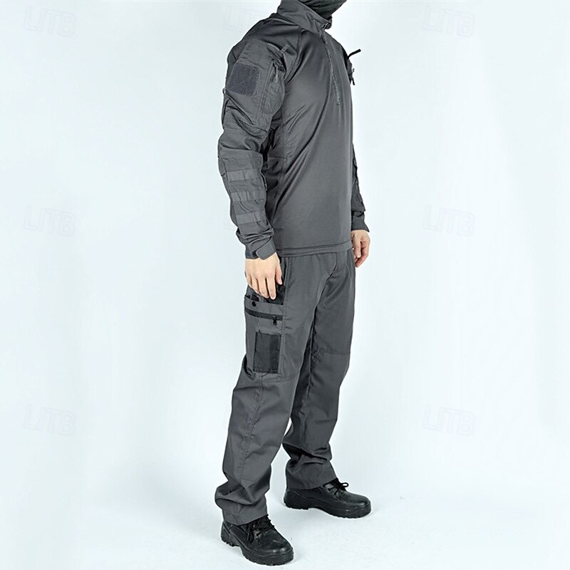 Men's Set Military Tactical Jacket Combat Jacket Hiking Jacket Outdoor Windproof Jacket Clothing Suit Climbing Camping / Hiking / Caving Traveling Black Grey 1