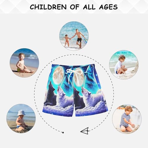 Kids Swimming Trunks, Toddler Trunks 2t, Galaxy Cool Wolf Blue Purple 5