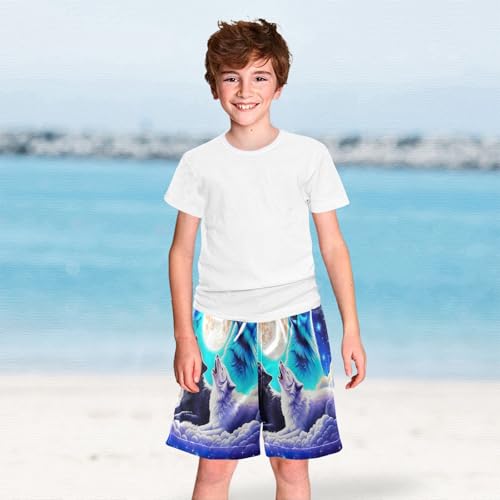 Kids Swimming Trunks, Toddler Trunks 2t, Galaxy Cool Wolf Blue Purple 4