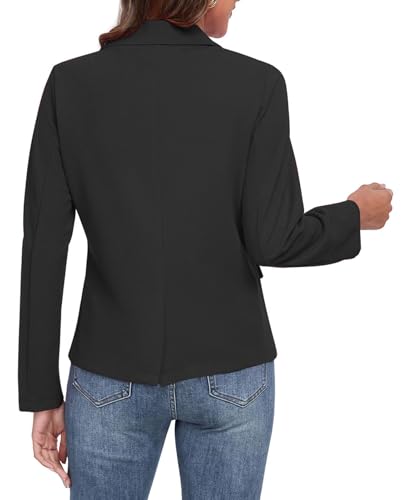 HOT ! Blazers for Women Casual Long Sleeve Button Front Notched Lapel Work Office Blazers Jacket with Pockets, Black