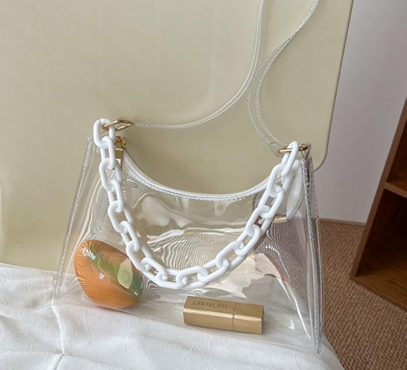 TOKYO-T Clear Stadium Bags for Women White Fluorescent Purse Shoulder Chain Approved 1