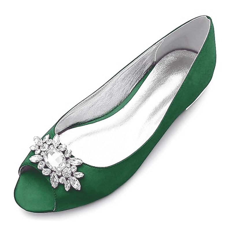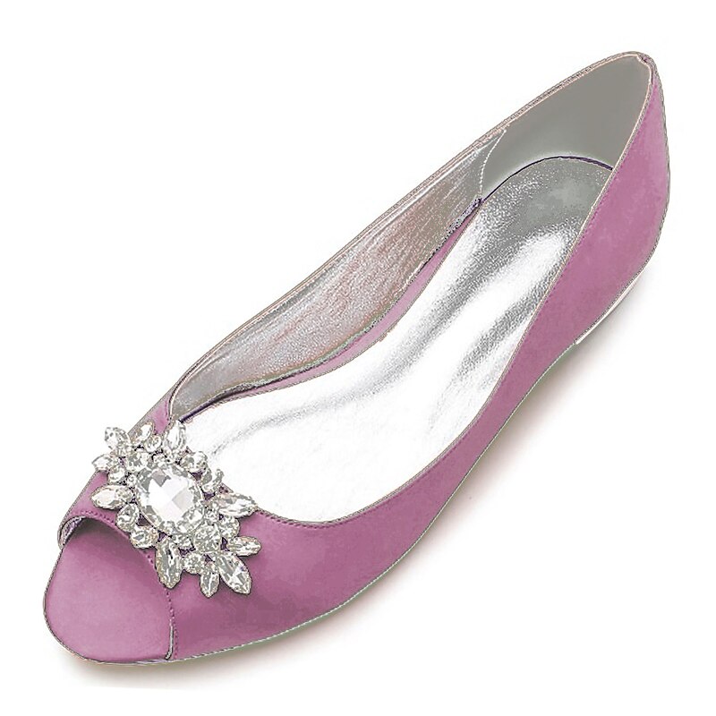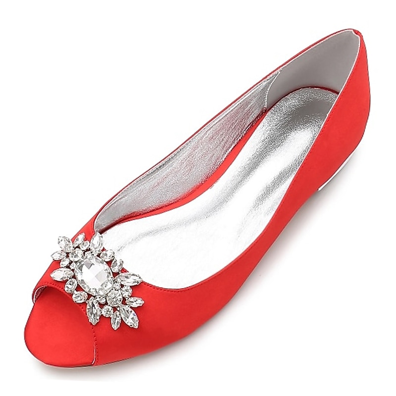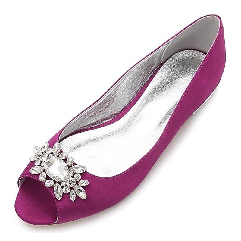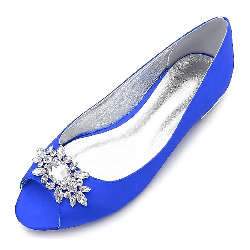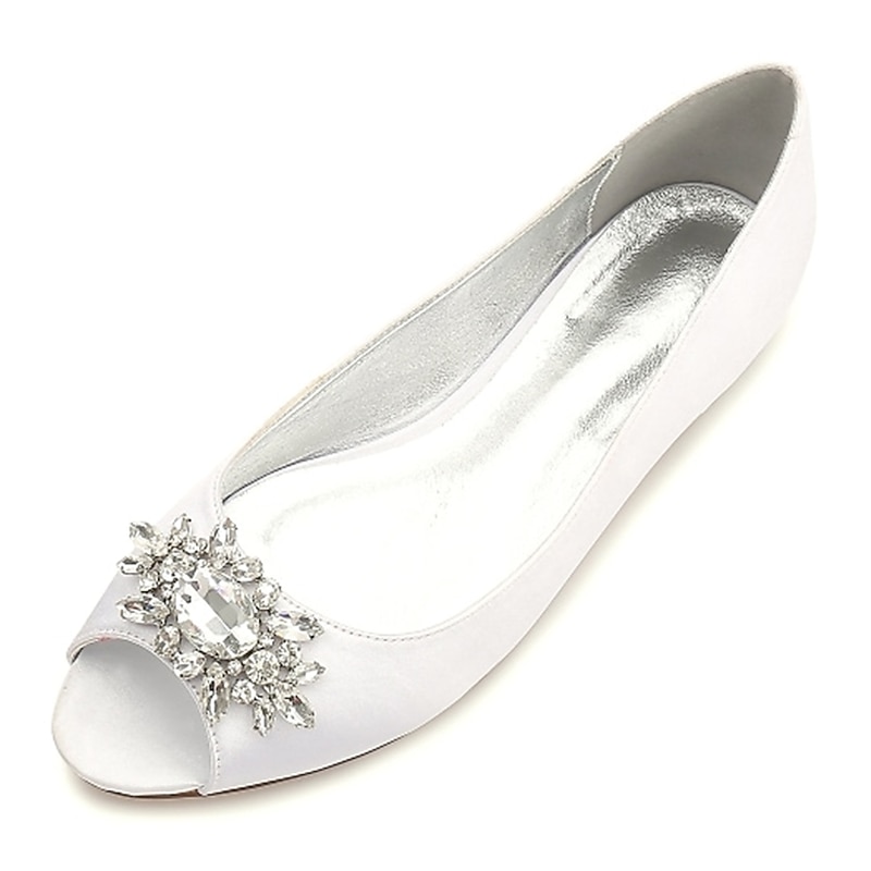 Highlights [Fabric] These elegant women's wedding shoes are crafted from premium satin, offering a smooth and sophisticated finish. The satin material adds a touch of luxury and elegance, perfect for bridal occasions. [Style] Designed with a classic peep-toe style, these shoes feature a flat heel, ensuring comfort throughout your special day. The sleek loafer style allows for a secure and effortless slip-on fit, making them practical for any event. [Design Highlights] Adorned with stunning crystal embellishments at the front, these shoes sparkle with jeweled floral patterns, enhancing their glamorous appeal. The interior boasts a comfortable metallic silver footbed, combining style and comfort in every step. [Occasions] Ideal for weddings, formal gatherings, or any special occasion that requires a touch of sophistication. These shoes are perfect for brides seeking elegance and comfort on their big day or anyone attending a formal event. [Size Range] Available in a wide range of sizes from US5.5 to US12, these shoes cater to various foot sizes, ensuring a perfect fit for every woman.