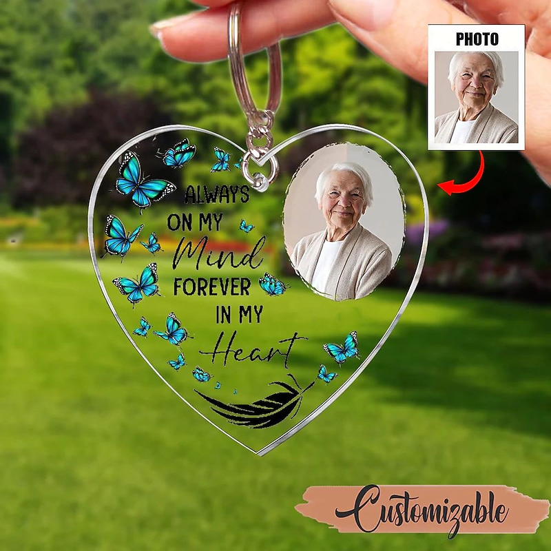 Personalized Acrylic Memorial Photo Keychain, Custom Keychain Sympathy Keepsake for Loss of Loved One,Heart Shaped Memorial Gifts Remembrance Decoration - Bereavement Condolences Gifts 11