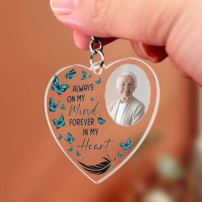 HOT ! Personalized Acrylic Memorial Photo Keychain, Custom Keychain Sympathy Keepsake for Loss of Loved One,Heart Shaped Memorial Gifts Remembrance Decoration - Bereavement Condolences Gifts