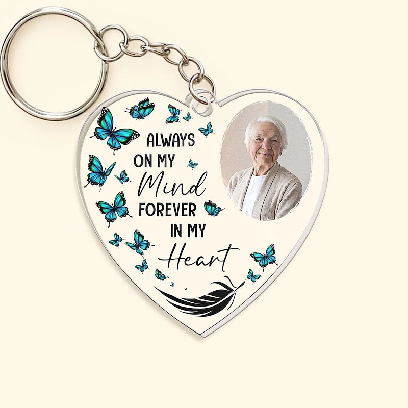 Personalized Acrylic Memorial Photo Keychain, Custom Keychain Sympathy Keepsake for Loss of Loved One,Heart Shaped Memorial Gifts Remembrance Decoration - Bereavement Condolences Gifts 15