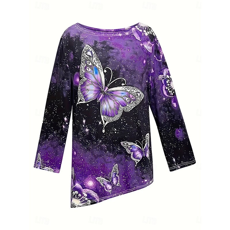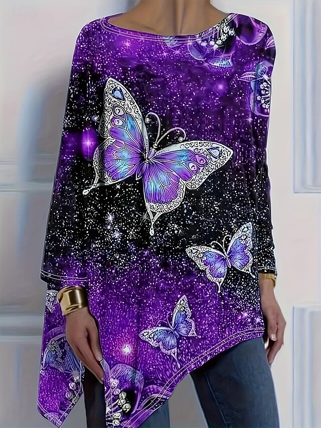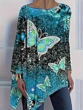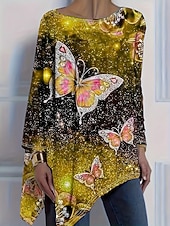More information about Women's T Shirt Graphic Geometric Butterfly Vintage Stylish Casual Long Sleeve Crew Neck Long Tops Daily Print Asymmetrical Yellow Purple Green Spring Fall