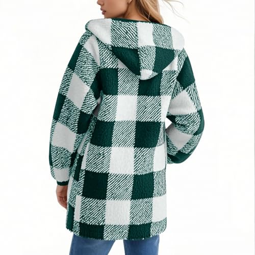 HOT ! Plaid Sherpa Jacket Women Plus Size Fleece Zip Up Jacket Soft Fuzzy Oversized Hoodie Faux Fur Fall Coats with Pockets