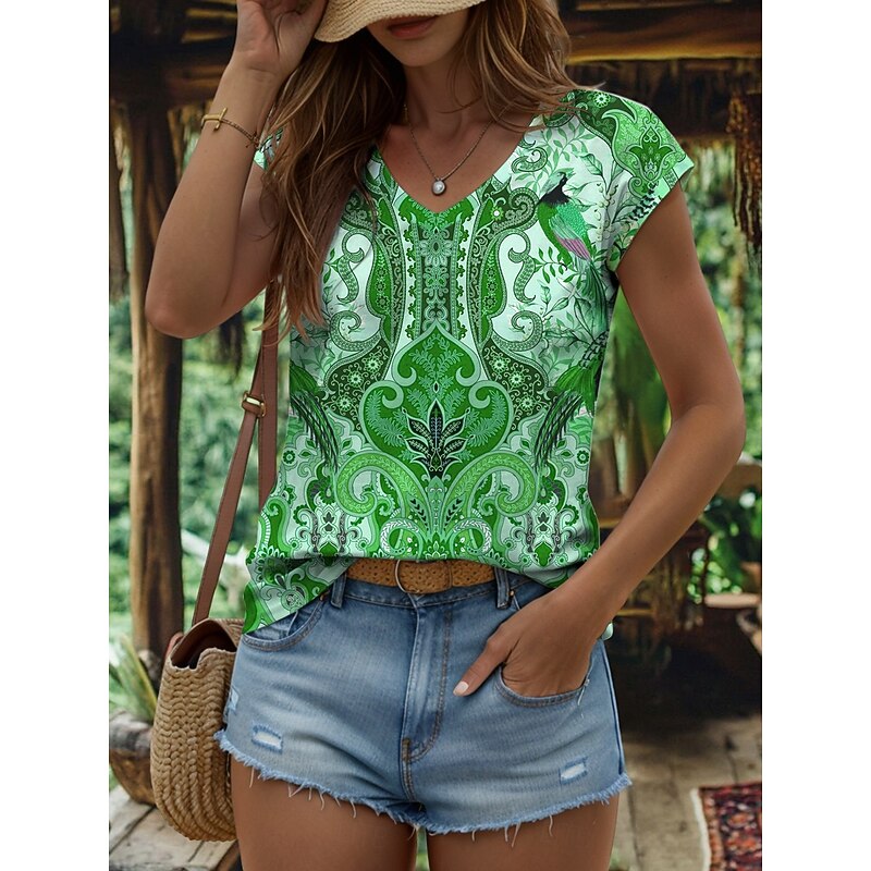 Women's Boho  Camisole Tank Top Graphic Vintage Stylish Classic Sleeveless Short Sleeve V Neck Regular Tops Daily Print Red Blue Purple Green Summer Spring 2