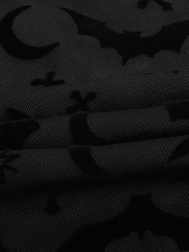 Verdusa Women's Y2k Gothic Clothes Sheer Mesh Top Tie Bell Sleeve Printed Wrap Blouse Shirt 6