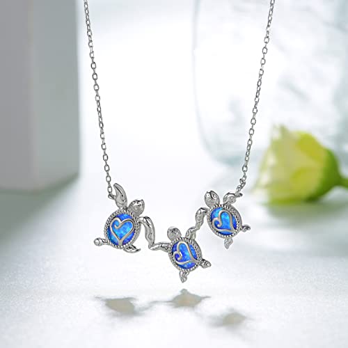 • 【Sea Turtle Design】: Our Turtle Necklace is set with a beautiful blue Opal and features three adorable turtles holding hands to symbolize unity, love, and keeping each other safe.