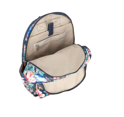 • LeSportsac Tropical Vibes Route Backpack/Rucksack, Style 3747/Color E629, Festive Tropical Paradise, Artfully Arranged Colorful Hibiscus Flowers & Palm Trees, Endless Summer Vibe, Many Compartments