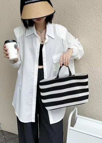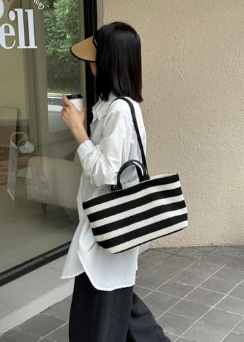 More information about Women's Large Capacity Straw Woven Underarm Totes Hollow Handbag Shoulder Crossbody Bag Striped Chic Stylish Versatile