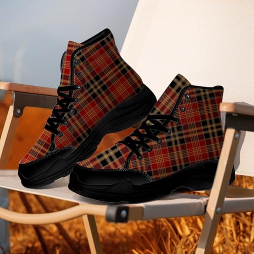 Men's Women's Tartan Plaid High Top Sneakers,Lace-up Canvas Platform Shoes,Gifts for Her Him 6