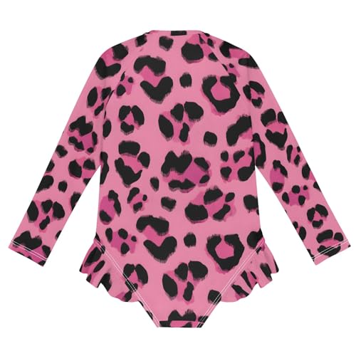 ALAZA Toddler Swimsuit Girl Bathing Suit Swimwear Rash Guard Rose Leopard Cheetah Long Sleeve 3T 6