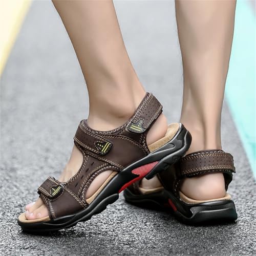 Men’S Casual Genuine Leather Soft Sandals Comfortable Beach Shoes Roman Style Ankle-Wrap Fashion Footwear 6
