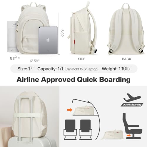 mixi Sweet Design Women Backpack Girls Cute Book Bag with Shockproof 15.6" Laptop Pocket Casual Daily Light Weight, Pearl White 5