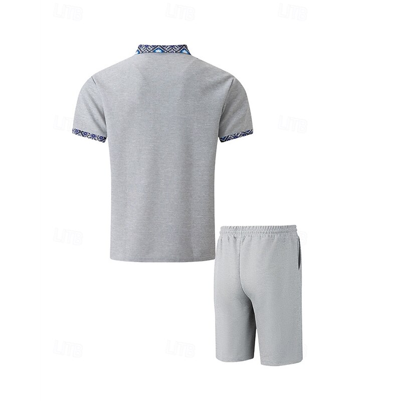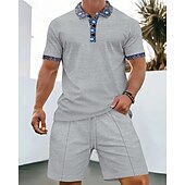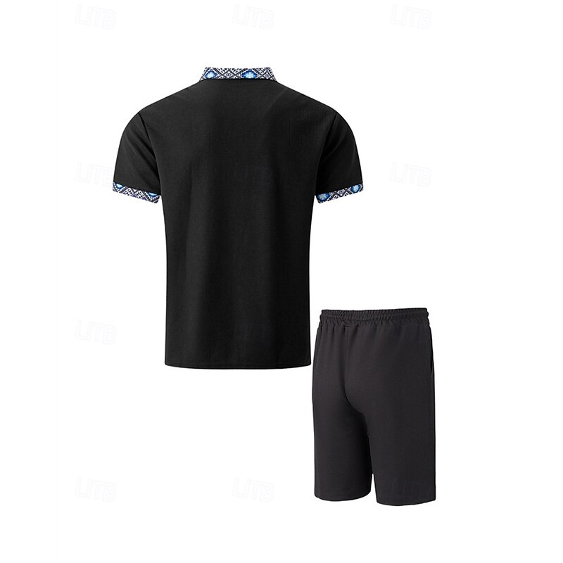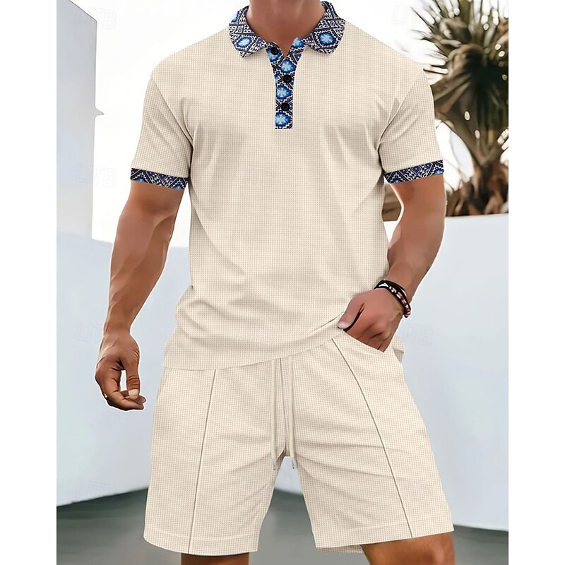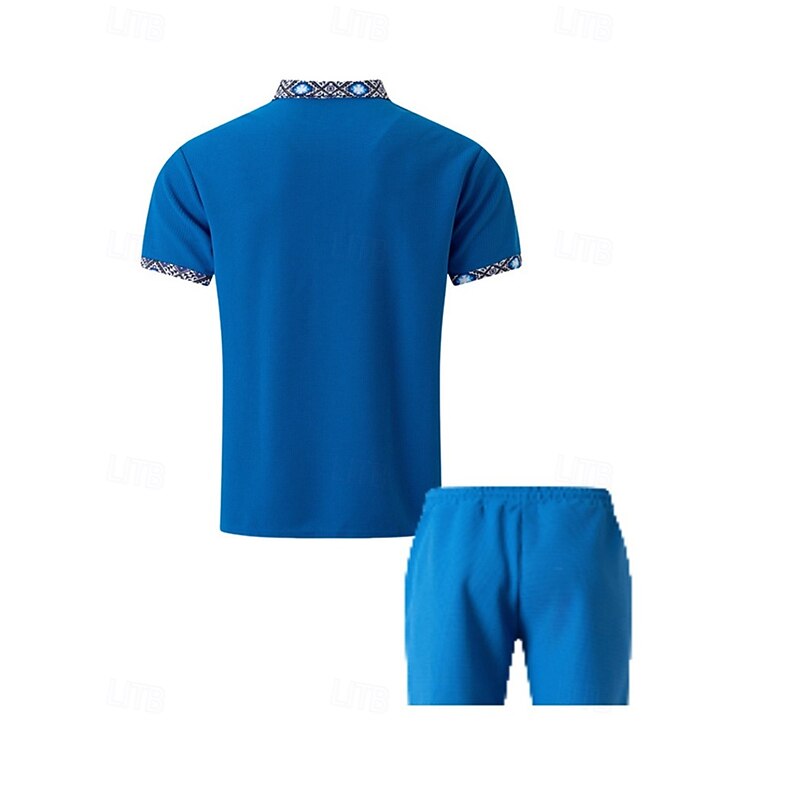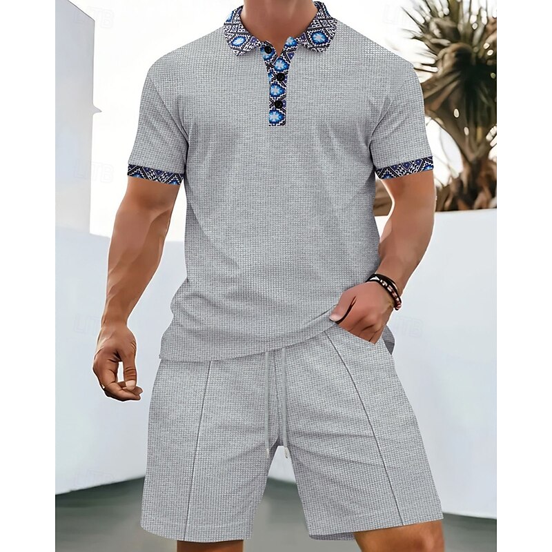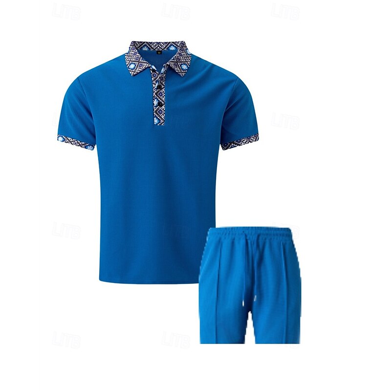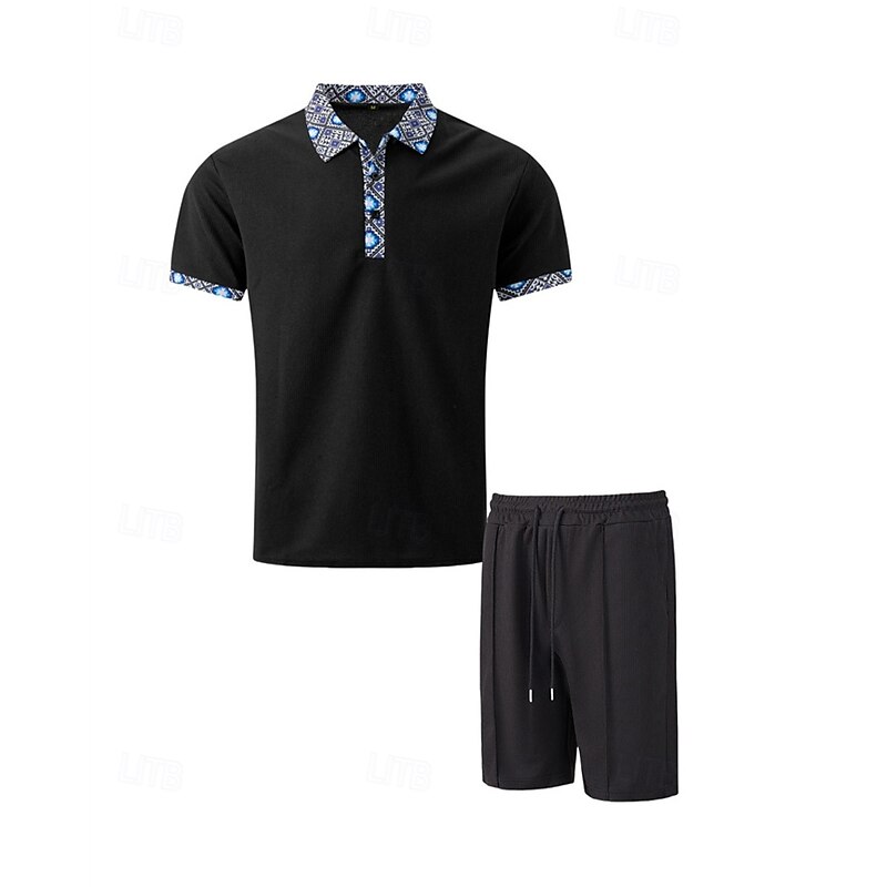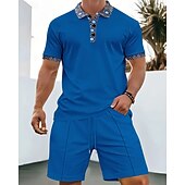 More information about Men's Waffle Shirt T-shirt Suits 2 Pieces Outfits Tee & Shorts Short Sleeve Lapel Summer Plain Fashion Casual Patchwork 2 Piece Vacation Daily Wear Going out Black White Royal Blue Top Tee for Men