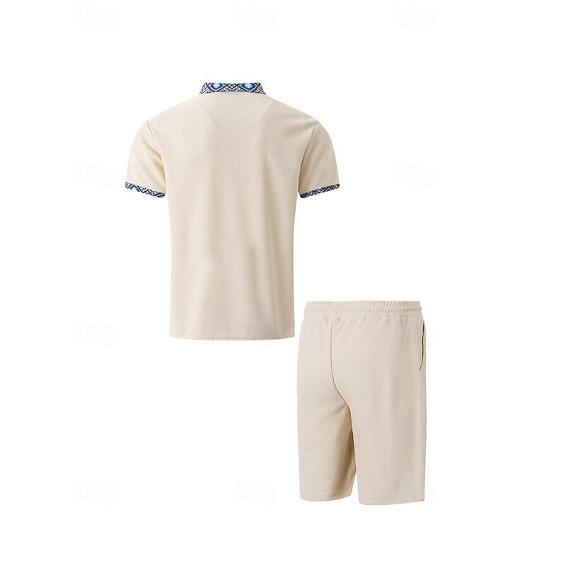 Highlights - Stay cool and stylish this summer with our polyester short sleeve 2 pieces outfits for men - Perfect for casual occasions and vacations - Unique patchwork design with a trendy lapel neckline - Elevate your summer wardrobe with this must-have ensemble