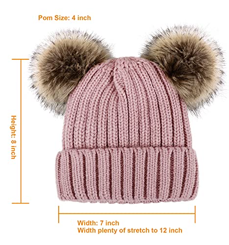 • Double Pom Pom ears - Adorable furry faux fur pompom ears makes kids winter hat super cute, kids hat with pom will look fabulous on your little angel , can add pop of style and fun with some lovely boots or a winter coat