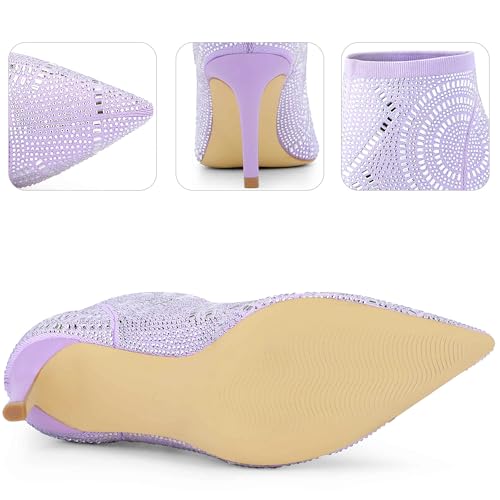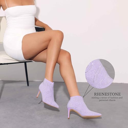 • [ Features ]: Pointed Toe, Stiletto Heel, Rhinestone Ankle Boot, Lightly Padded, Shinny Ankle Booties