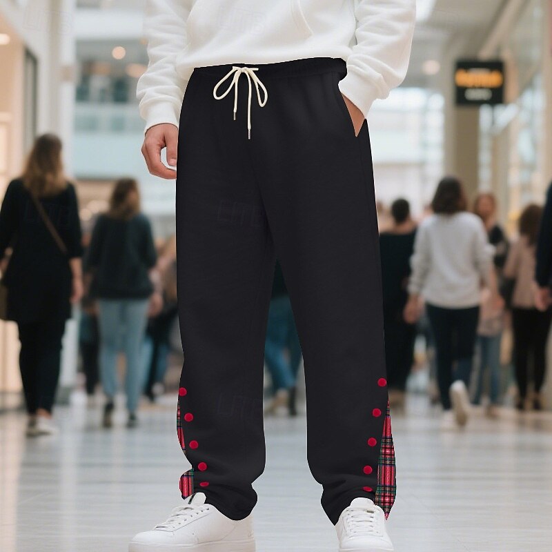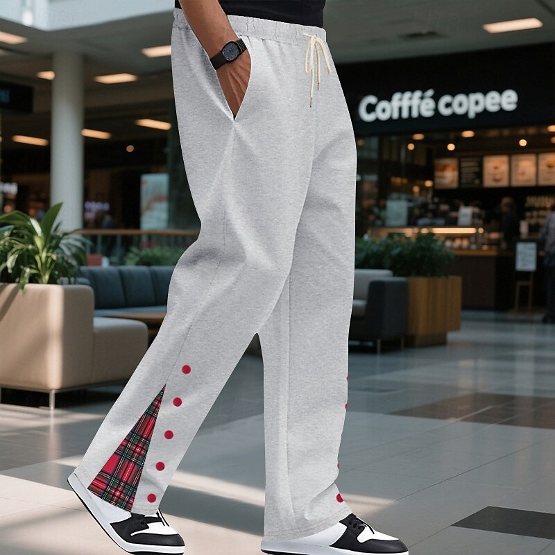 More information about Men's Athletic Pants Sweatpants Trousers Pocket Drawstring Elastic Waist Plaid Patchwork Comfort Sports Outdoor Daily Fashion Casual Black White Micro-elastic