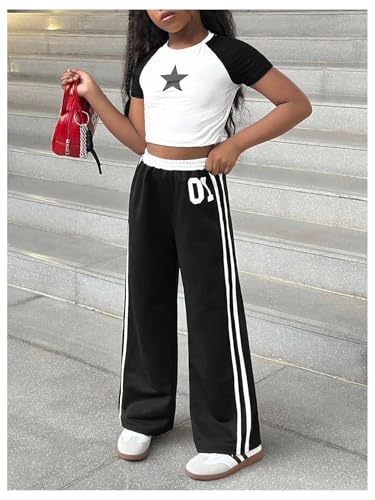 HOT ! Milumia Girl's Number Graphic Striped Sweatpants Baggy Elastic Waist Wide Leg Trousers