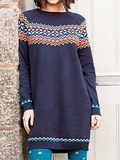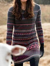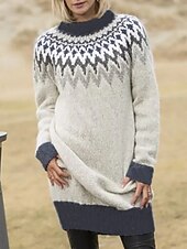 More information about Women's Sweater Casual Soft Geometric Ribbed Crew Neck Knitted Print Long Sleeve Long Tops Knit Outdoor Daily Weekend Black Navy Blue Fall Winter