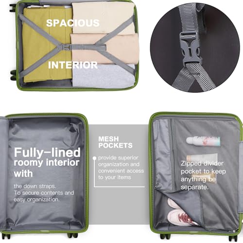 Kono Luggage PP Durable Hardside Suitcase with Double Spinner Wheels TSA Lock, 24-inch, Green 4