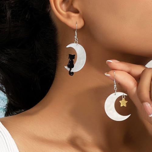 • 🔥Unique Dual Design: Halloween-ready ghost cat hugging carved pumpkin + dreamy crescent moon with star charm and sitting black cat.